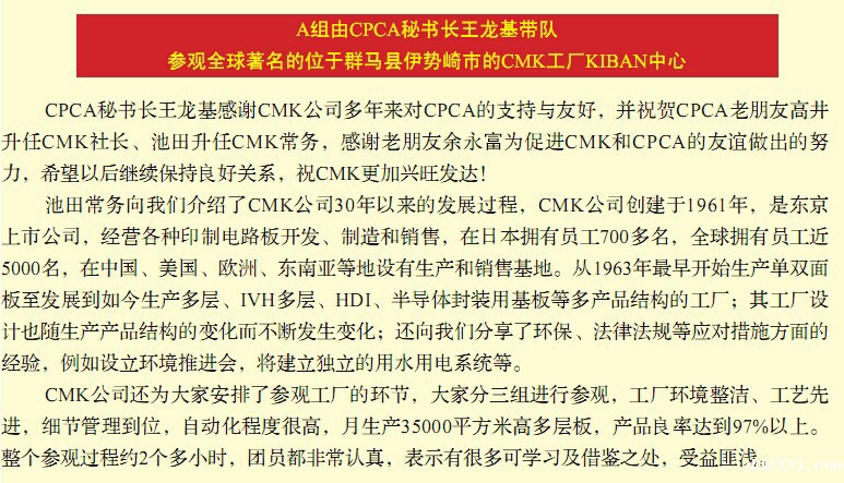 CPCA赴日考察团参观日本CMK、紫翔工厂