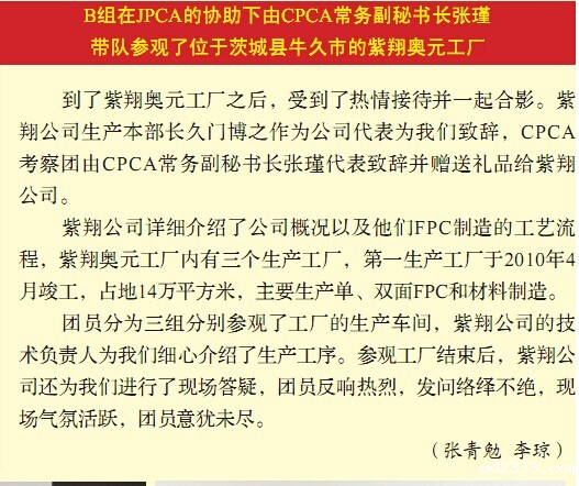 2014年6月6日,CPCA赴日考察团分A、B两组分别参观日本CMK工厂和日本紫翔工厂。
