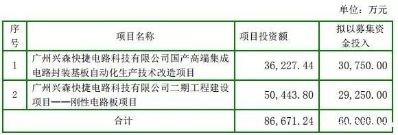 公告显示,上述项目建成后,公司每年将新增12.36万平方米刚性电路板产能。该项目的实施主体为公司全资子公司广州兴森,本次募集资金到位后,将通过向广州兴森增资的方式投入,广州兴森根据公司制定的募集资金投资计划具体实施。