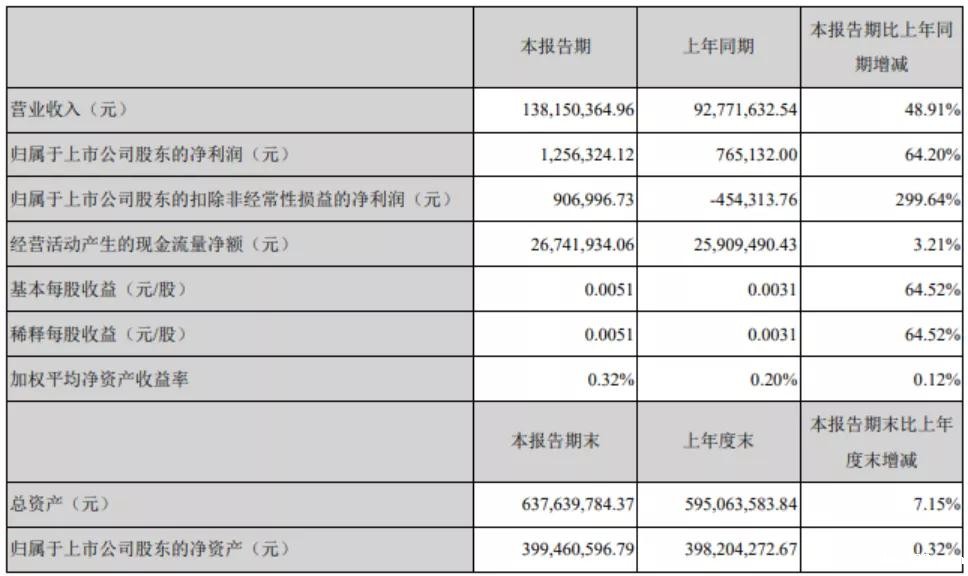 4月25日,天津普林发布Q1业绩报告称,公司实现营业收入为1.38亿元,同比增长48.91%;归属于上市公司股东的净利润为126万元,同比增长64.20%。