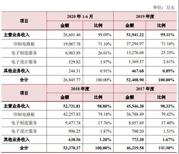 2017年到2020年上半年,中富电路的营收分别为7.6亿元、8.68亿元、11.17亿元、5.39亿元,利润分别为4908.71万元、8398.6万元、9334.49万元、5210.44万元。
