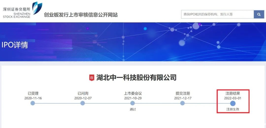 近日,证监会网站披露,证监会同意湖北中一科技股份有限公司(下称“中一科技”)首次公开发行股票的注册申请。