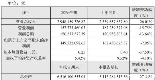 公告显示,中京电子总资产为6,516,100,553.01元,比本报告期初增长27.43%;基本每股收益为0.25元,上年同期为0.40元。