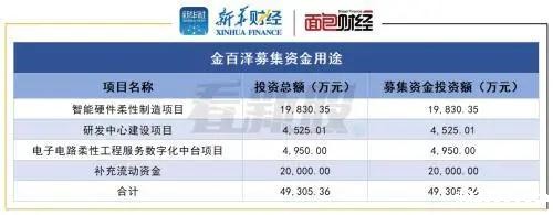据悉,金百泽此次IPO计划发行不超过2668万股,拟募资金额约4.93亿元。其中,1.98亿元用于智能硬件柔性制造项目,4525.01万元用于研发中心建设项目,4950.00万元用于电子电路柔性工程服务数字化中台项目,还有2亿元用于补充流动资金,约占募集资金总额的四成。