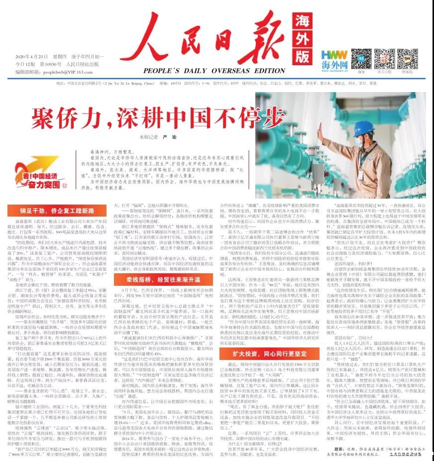 4月23日,《人民日报》海外版“聚侨力,深耕中国不停步(看!中国经济奋力突围)”,报道了汕头市侨商会副会长单位——宏俐(汕头)电子科技有限公司扩大投资,乘势而上的新貌。
