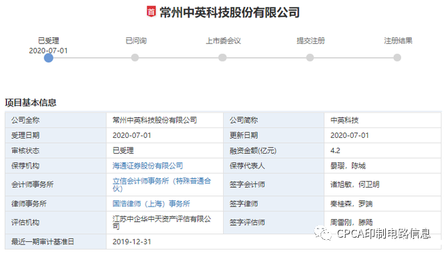 2020年上半年多家PCB行业企业冲刺上市,现进入下半年,PCB行业的上市热情仍然不减。7月1日,深交所正式受理了常州中英科技股份有限公司(简称:中英科技)创业板上市申请。