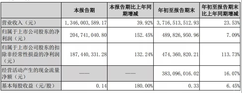 10月20日,兴森科技披露三季度报告,公司2021年三季度实现营业收入为13.46亿元,同比增长39.92%;归母净利润2.05亿元,同比增长152.45%;基本每股收益0.14元;归母扣非净利润1.87亿元,同比增长132.24%;公司前三季度实现净利润4.9亿元,同比增长7.09%。