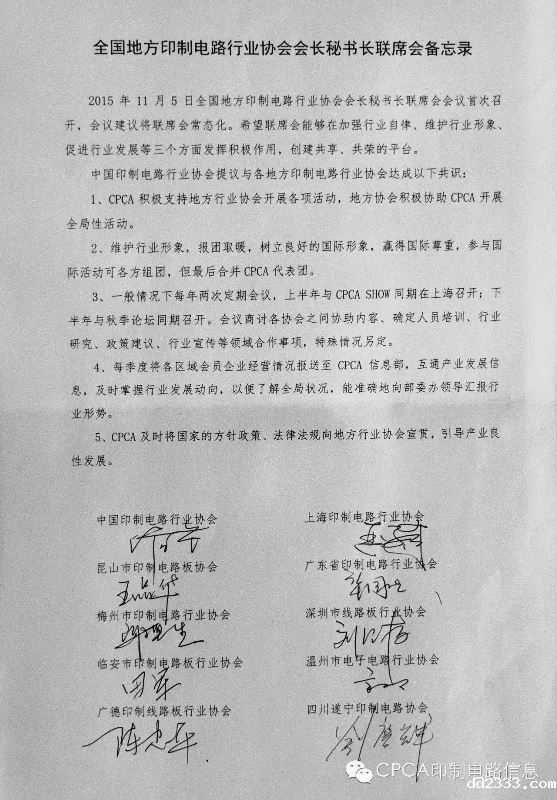 在2016年度联席会上,中国印制电路行业协会提议与各地方印制电路行业协会达成以下共识: