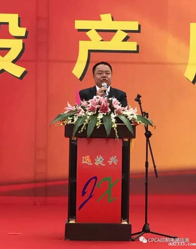 张瑾秘书长在开业庆典上发表致辞,代表CPCA由镭理事长、王龙基名誉秘书长向马卓董事长、迅捷兴全体同仁表示热烈祝贺!信丰迅捷兴的开业投产,是迅捷兴发展历史中的里程碑、又是迅捷兴腾飞的新起点!她特别强调,制造业是国民经济的主体,是立国之本、兴国之器、强国之基,打造具有国际竞争力的制造业是提升我国综合国力、保障国家安全、建设世界强国的必经之路。国家出台了“中国制造2025”的鼓励政策助推制造业做强,希望迅捷兴借此契机、抓住机会、把握时代脉搏、顺应市场发展趋势,推动技术创新,同时注重品牌建设、弘扬品牌文化,为中国电子电路行业发展贡献力量!