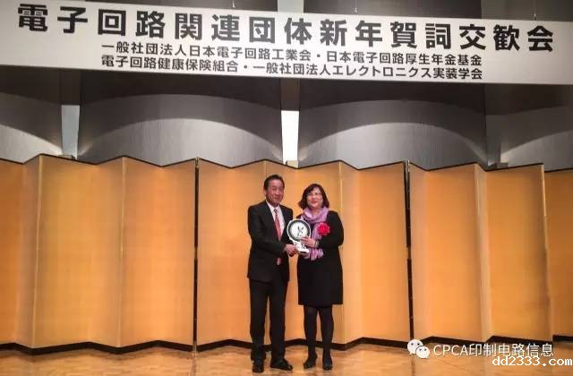 张秘书长说:今天我代表中国印制电路行业协会CPCA理事长由镭及一同前来参加此次活动的CPCA名誉秘书长王龙基、CPCA常务理事、CPCA展览办主任袁晓燕、CPCA驻日首席代表缪海燕,祝贺JPCA每年新年会的成功;祝愿JPCA带领下的企业在新的一年里,取得更大丰收!