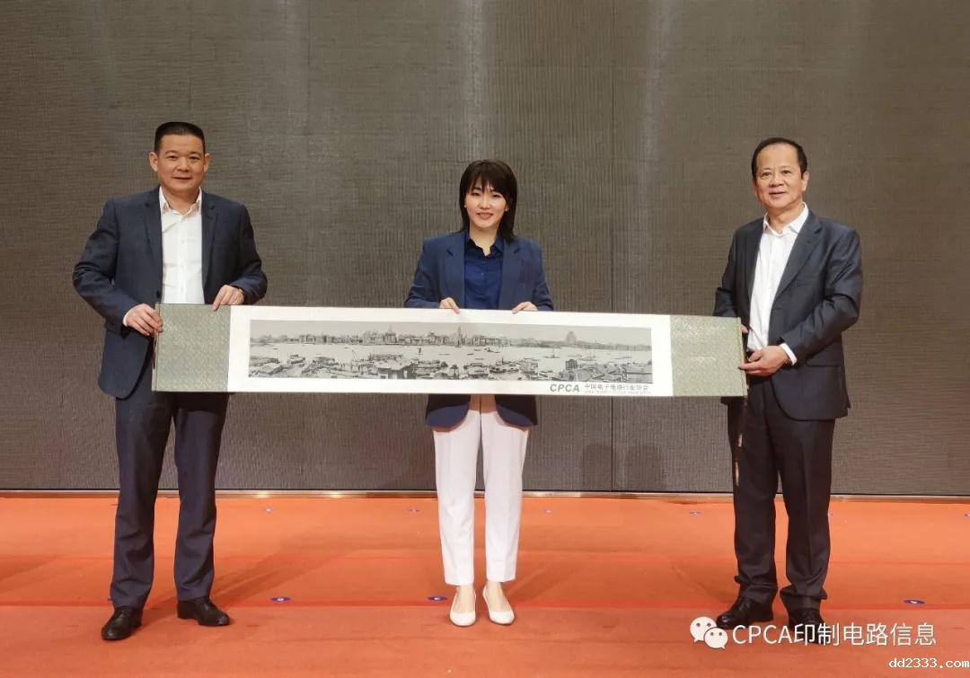 CPCA副秘书长李琼代表18新利体育向梅州市印制电路行业协会赠送礼品。