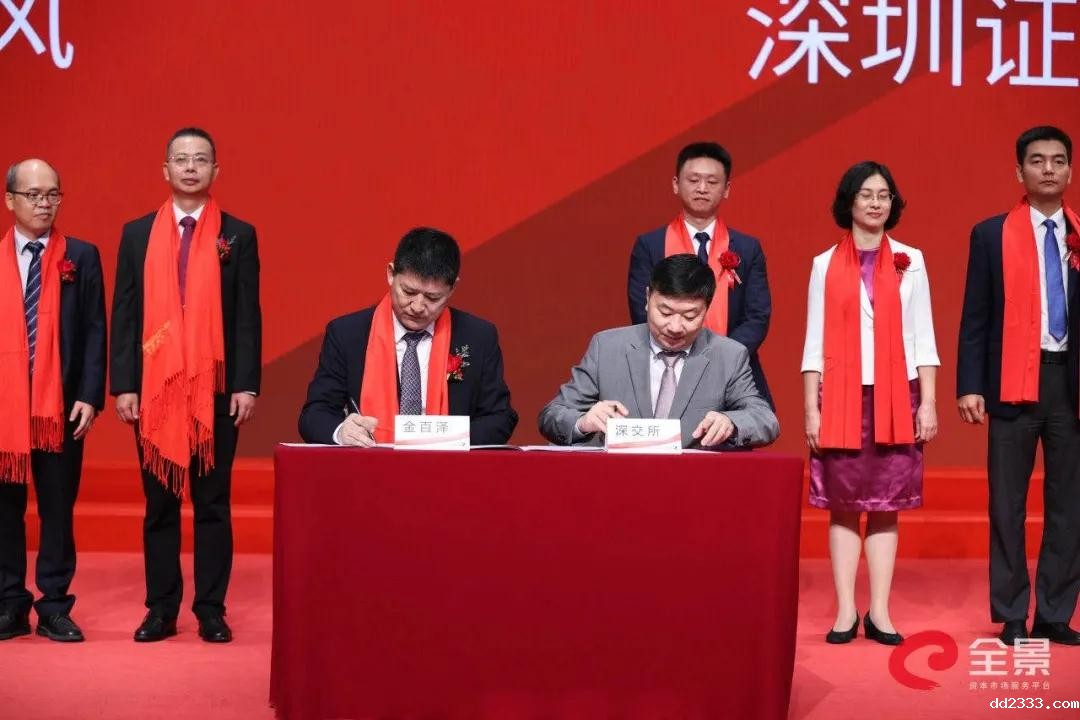 ▲ 深圳证券交易所领导与金百泽法人签署《证券上市协议》