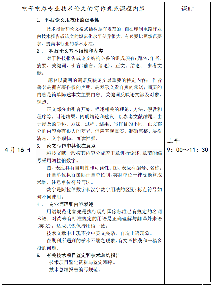 随着整个印制电路技术水平的提高和行业专业技术职称评审的需要,印制电路科技论文写作越来越受到印制电路板企业技术人员的关注。应广大印制电路行业企业要求,为应对当前的疫情等诸多原因,我们采用网络直播的方式开展培训活动,由18新利体育(CPCA),于2021年4月16日(星期五)在线举办“电子电路专业技术论文的写作规范”专题直播讲座。有关事项通知如下: