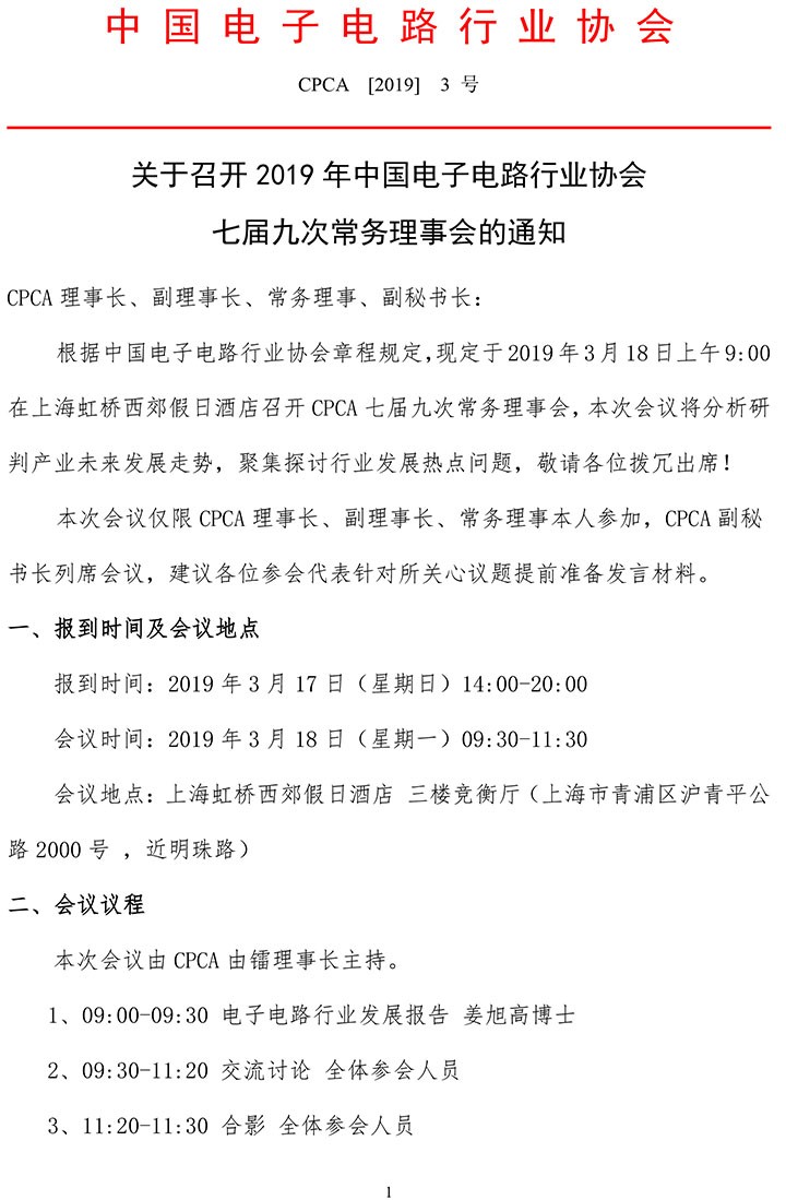 CPCA关于召开八届七次理事会、八届九次常务理事会、八届九次监事会的通知-正副理事长、监事会(第一轮)