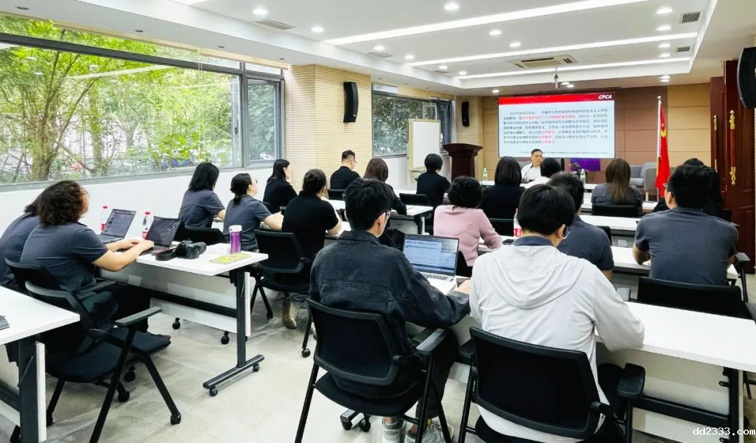 《高标准开展主题教育 推进协会高质量发展》专题党课上,由镭理事长从开展主题教育实施方案重点内容、深刻理解把握中国式现代化理论、全力推进协会高质量发展等三方面展开。