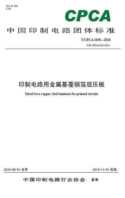 T/CPCA 4105-2016《金属基覆铜箔层压板》发布通告