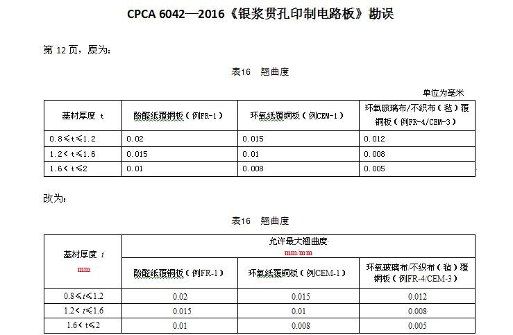 CPCA 6042—2016《银浆贯孔印制电路板》勘误